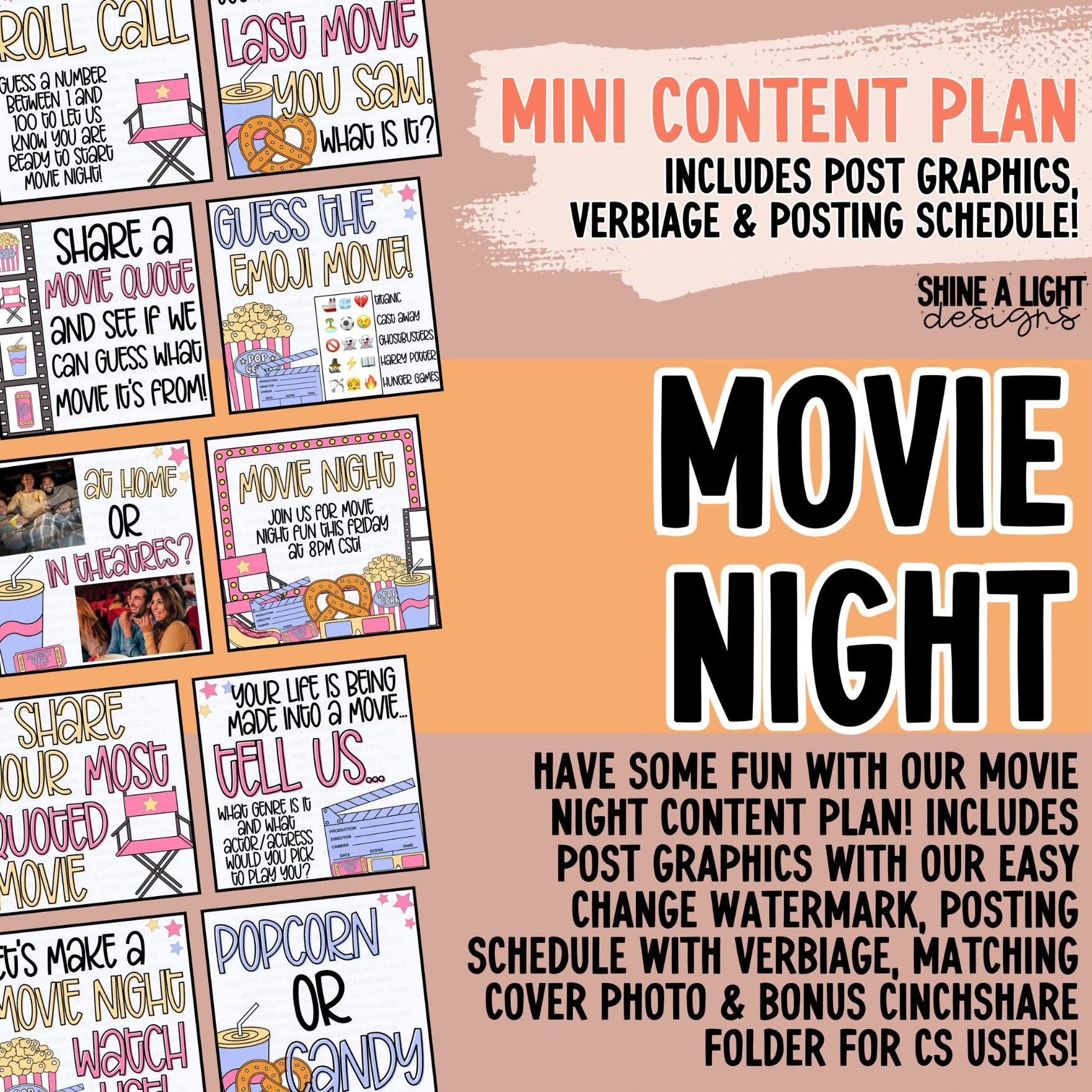 2025 Movie Night Night Content Plan - Graphics, Schedule + Verbiage for Any Small Business!