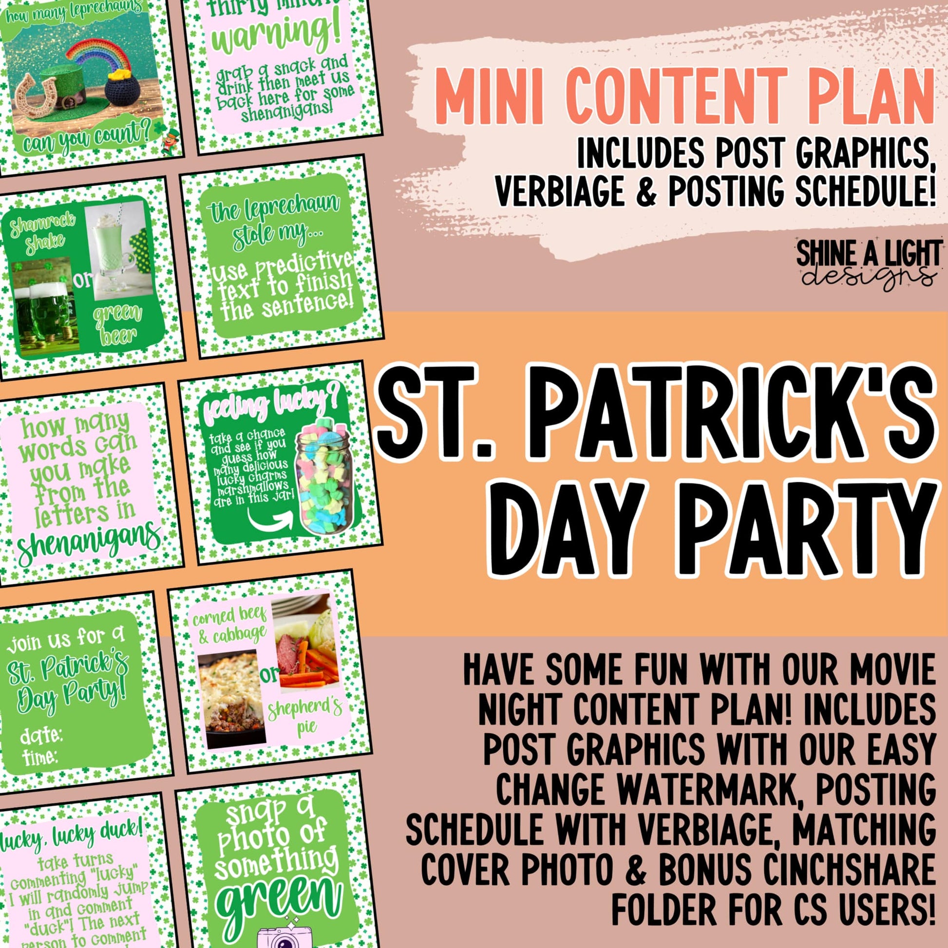 2025 St. Patricks Day Content Plan - Graphics, Schedule + Verbiage for Any Small Business! (Copy)