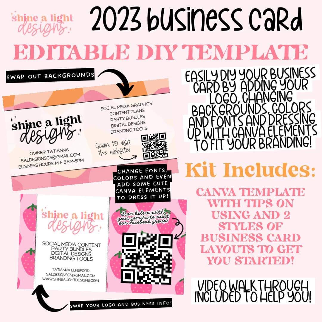 Create your own custom business card with your choice of TWO styles. This will give you a Canva template with the layout and my own logo and info and you just change to your logo, colors, text, etc! A How To video is also included that walks you through editing and customizing your business card!