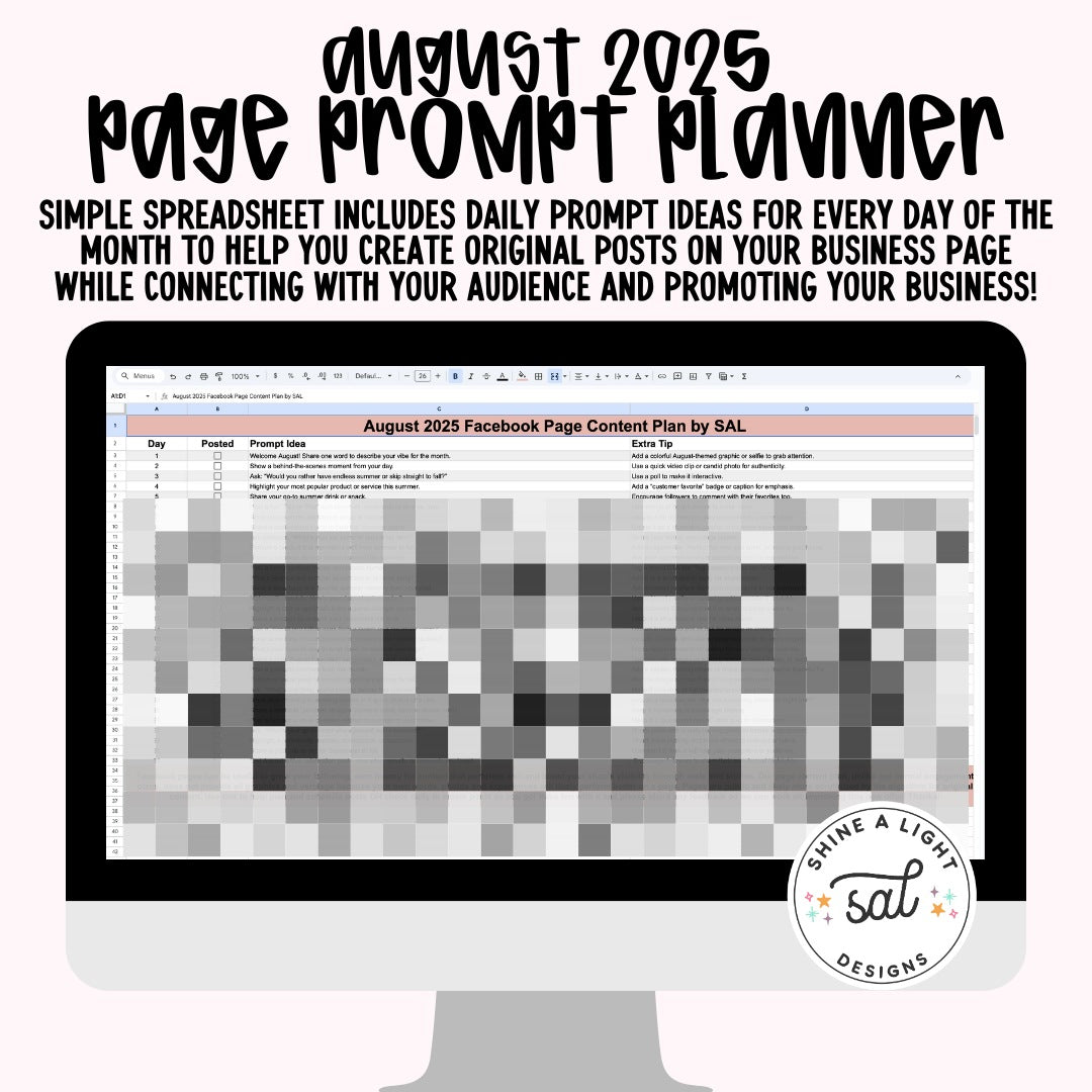 Our monthly page prompt planner offers a simple prompt idea for each day of the month to help you create easy and unique-to-you content for your Facebook page or other socials!