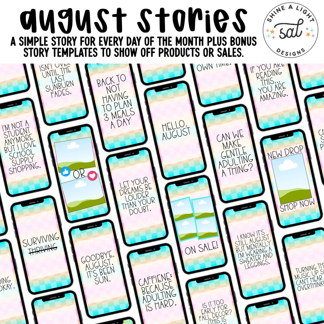 31 story graphics for your socials! A mix of relatable humor & motivating sayings to liven up your socials! Comes in a Canva template for easy editing & saving!