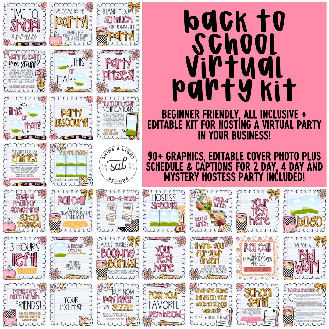 Our Easy Peasy Virtual Party Systems are the perfect solution for hosting a hassle-free virtual party. It is an all-inclusive system complete with graphics, verbiage and a schedule for 2 day, 4 day and mystery hostess party structures. Additionally, graphics are editable in Canva with an easy-change watermark. If you are looking to add virtual parties to your business this bundle will save you time and make it easy to run a fun, professional and cohesive party!