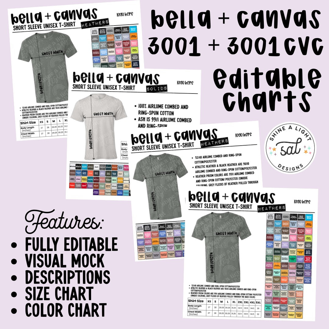 Bella + Canvas 3001/3001CVC Color/Size Chart Templates