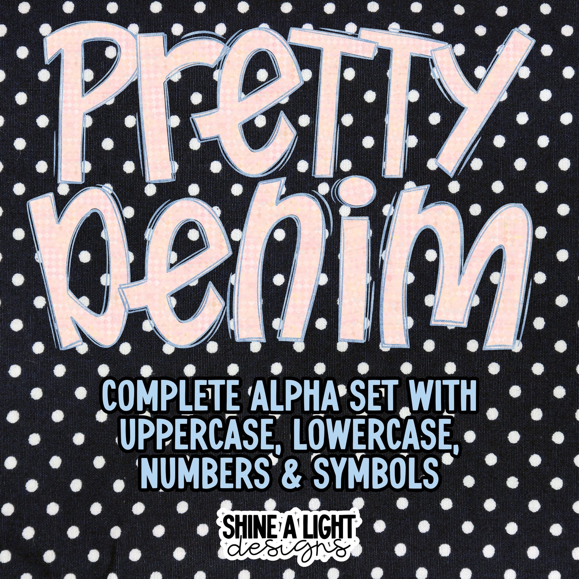 Create a variety of cute and fun designs with our Pretty Denim alpha set! You get all letters upper & lowercase plus all numbers and commonly used symbols! Have fun creating digital designs, eye-catching posts, printable & more!