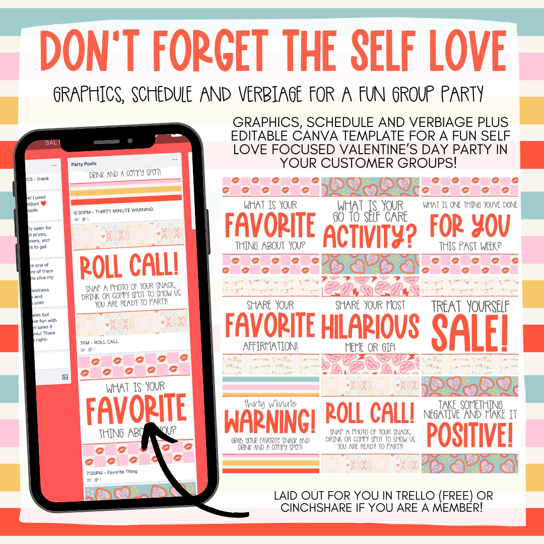 Don't Forget the Self Love Valentine's Day Content Plan - Graphics, Schedule + Verbiage for Any Small Business!
