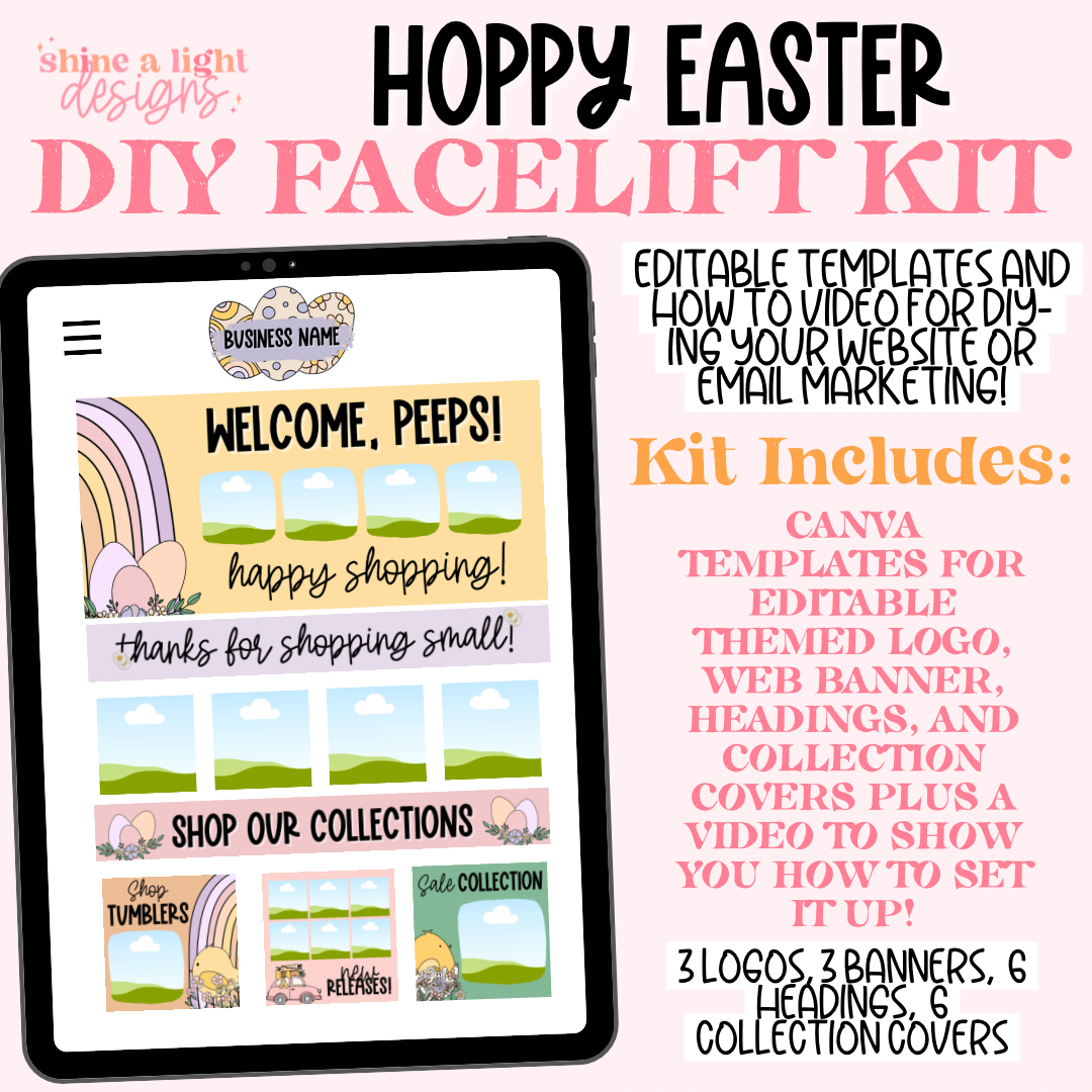 Grab this eye-catching Easter themed website facelift template kit to liven up your website! Kit comes with website headers, banners, collection covers and an easy editable coordinating logo plus a video showing you how to set it up on Shopify!