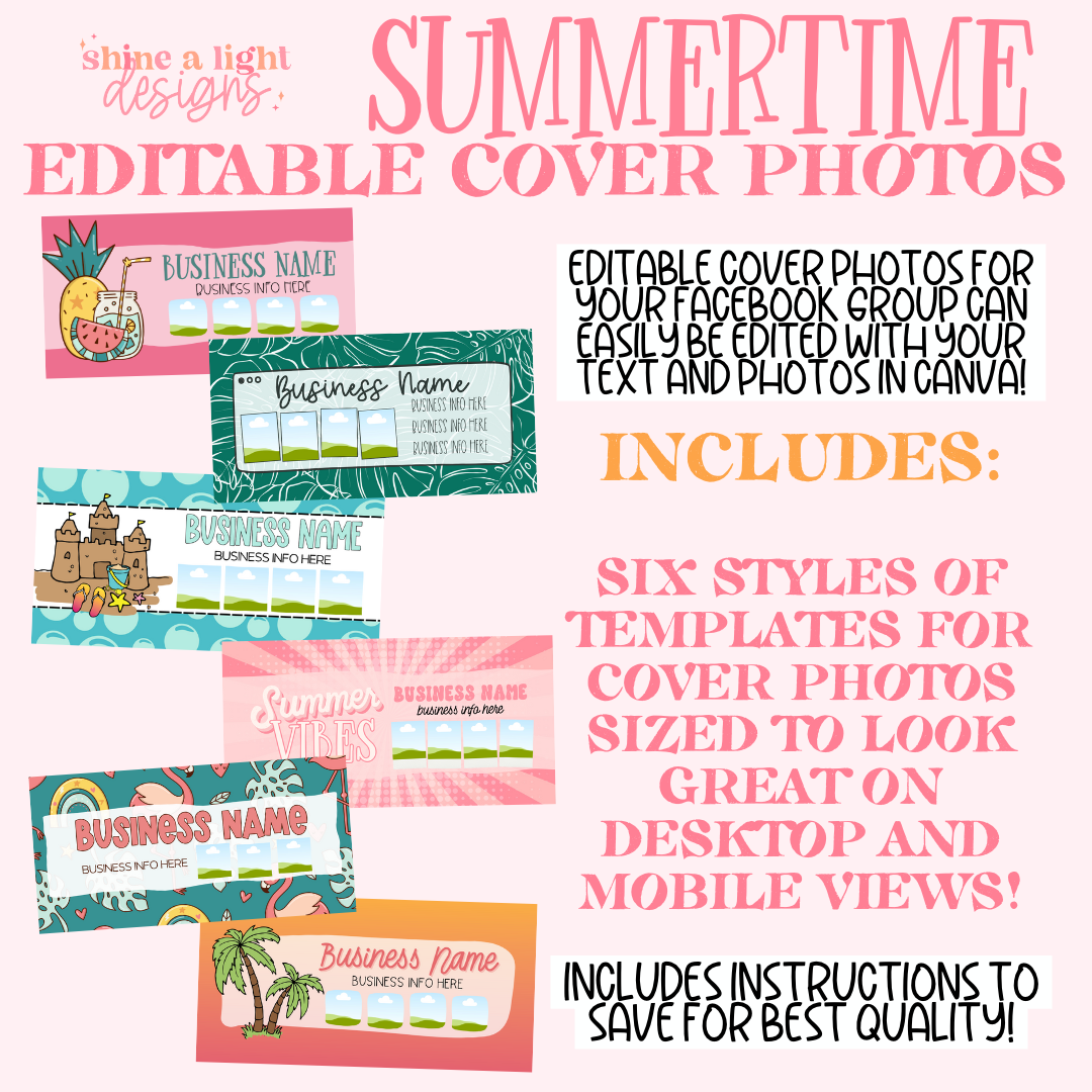 Grab a bundle of 6 summer cover photos for you to use over the summer months! You get a link to a template with both options that you can easily edit and use! These can also double as email banners and website banners!