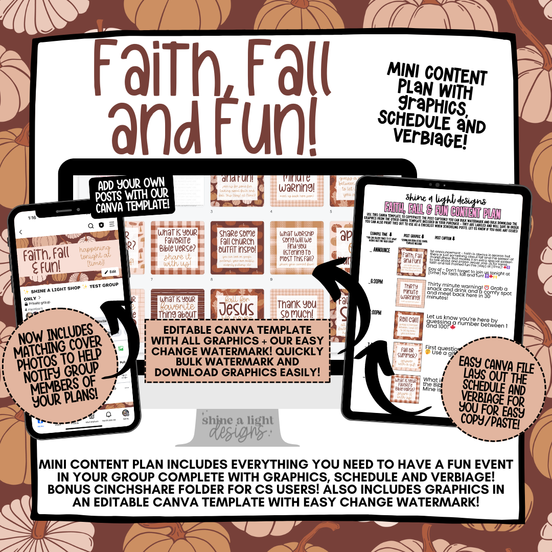 Faith, Fall & Fun Content Plan - Graphics, Schedule + Verbiage for Any Small Business!
