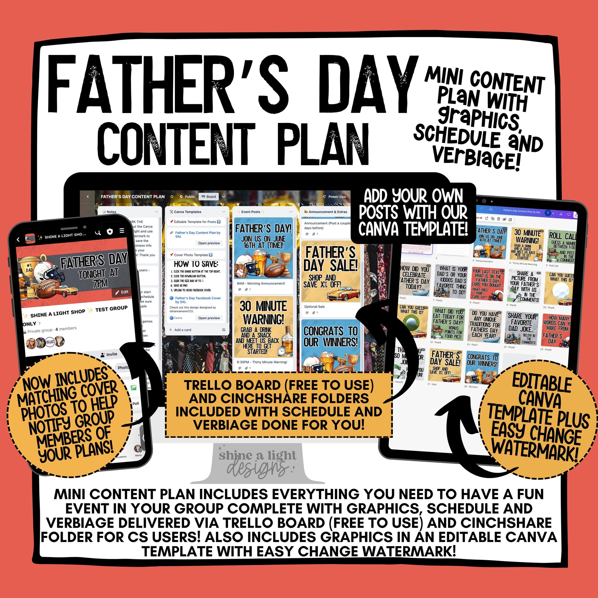 FATHER'S DAY Content Plan 2024 - Graphics, Schedule + Verbiage for Any Small Business!