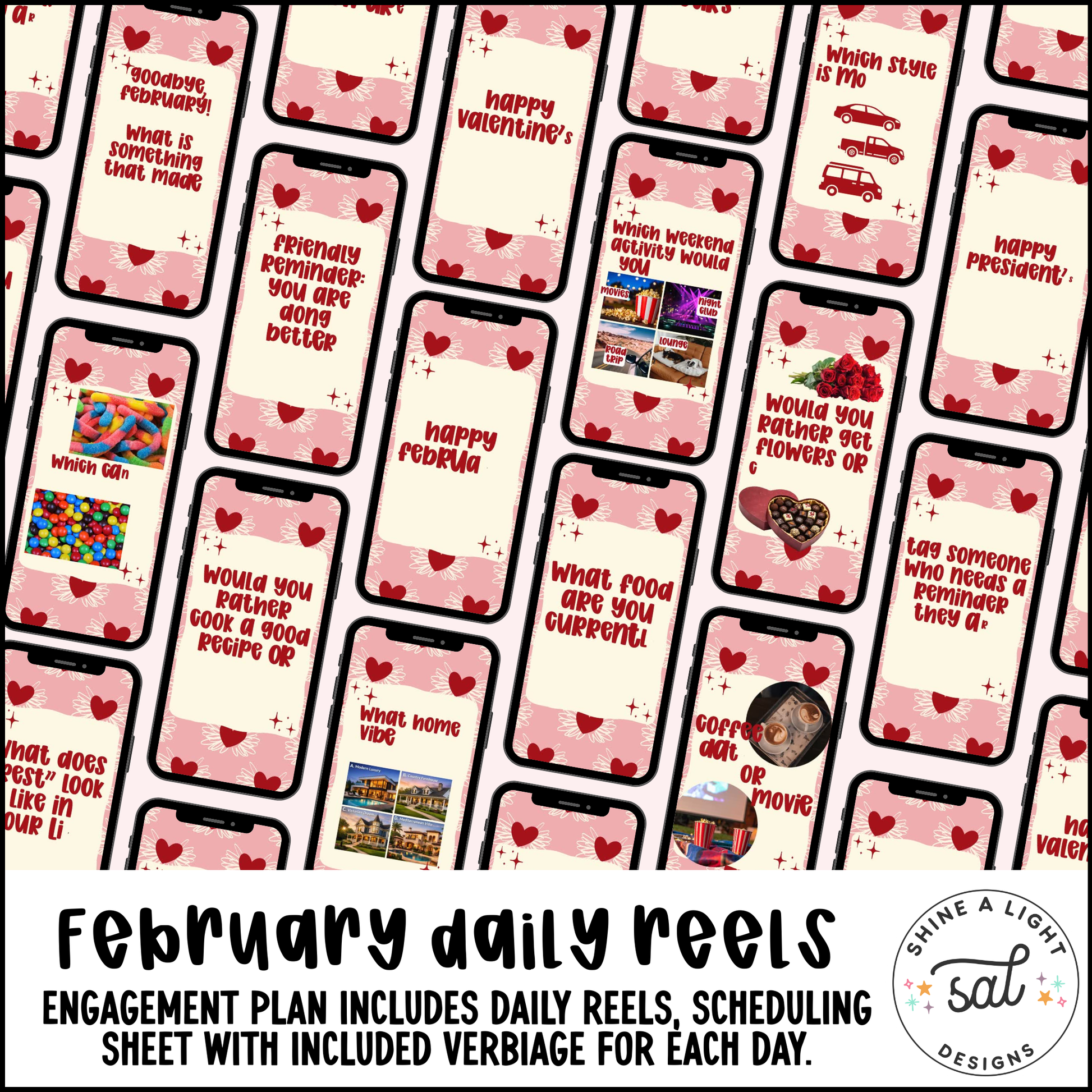 Bundle includes daily done-for-you reels for every day of the month to engage your followers! Each Monday of the month is a motivational reel, each Friday is a sharable recipe and the rest are a mix of engagement, tag a friend posts and interactive games!