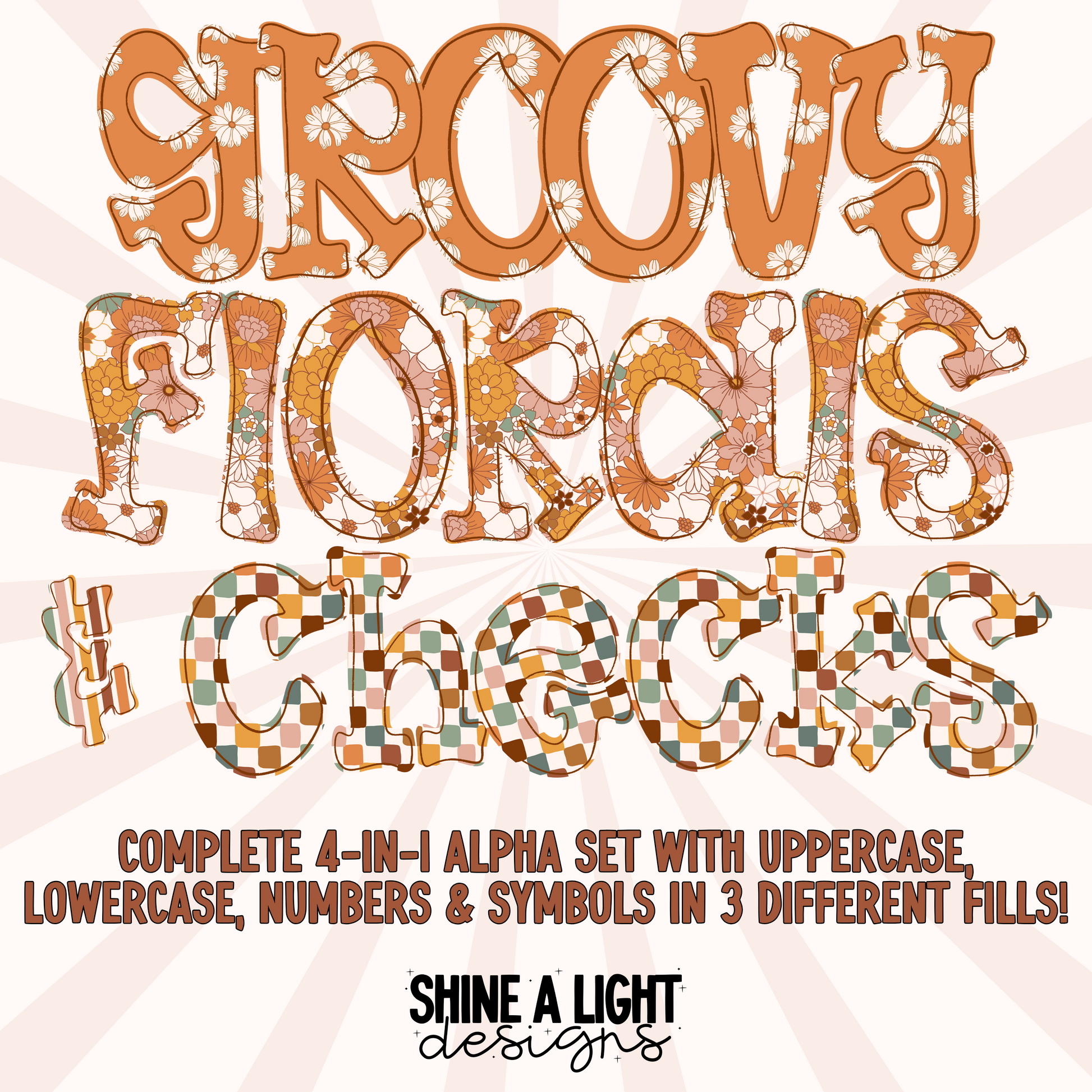 Create a variety of cute and fun designs with our Groovy Florals & Checks alpha set! You get all letters upper & lowercase plus all numbers and commonly used symbols in 4 different coordinating fills! Have fun creating digital designs, eye-catching posts, printable & more!