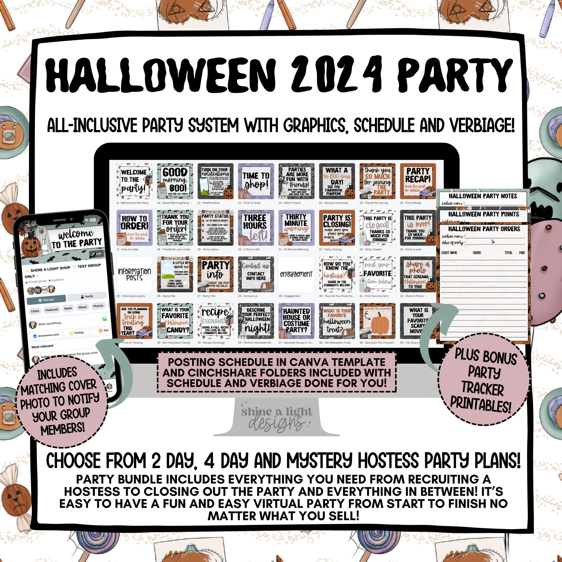 Our Easy Peasy Virtual Party Systems are the perfect solution for hosting a hassle-free virtual party. It is an all-inclusive system complete with graphics, verbiage and a schedule for 2 day, 4 day and mystery hostess party structures. Additionally, graphics are editable in Canva with an easy-change watermark. If you are looking to add virtual parties to your business this bundle will save you time and make it easy to run a fun, professional and cohesive party!
