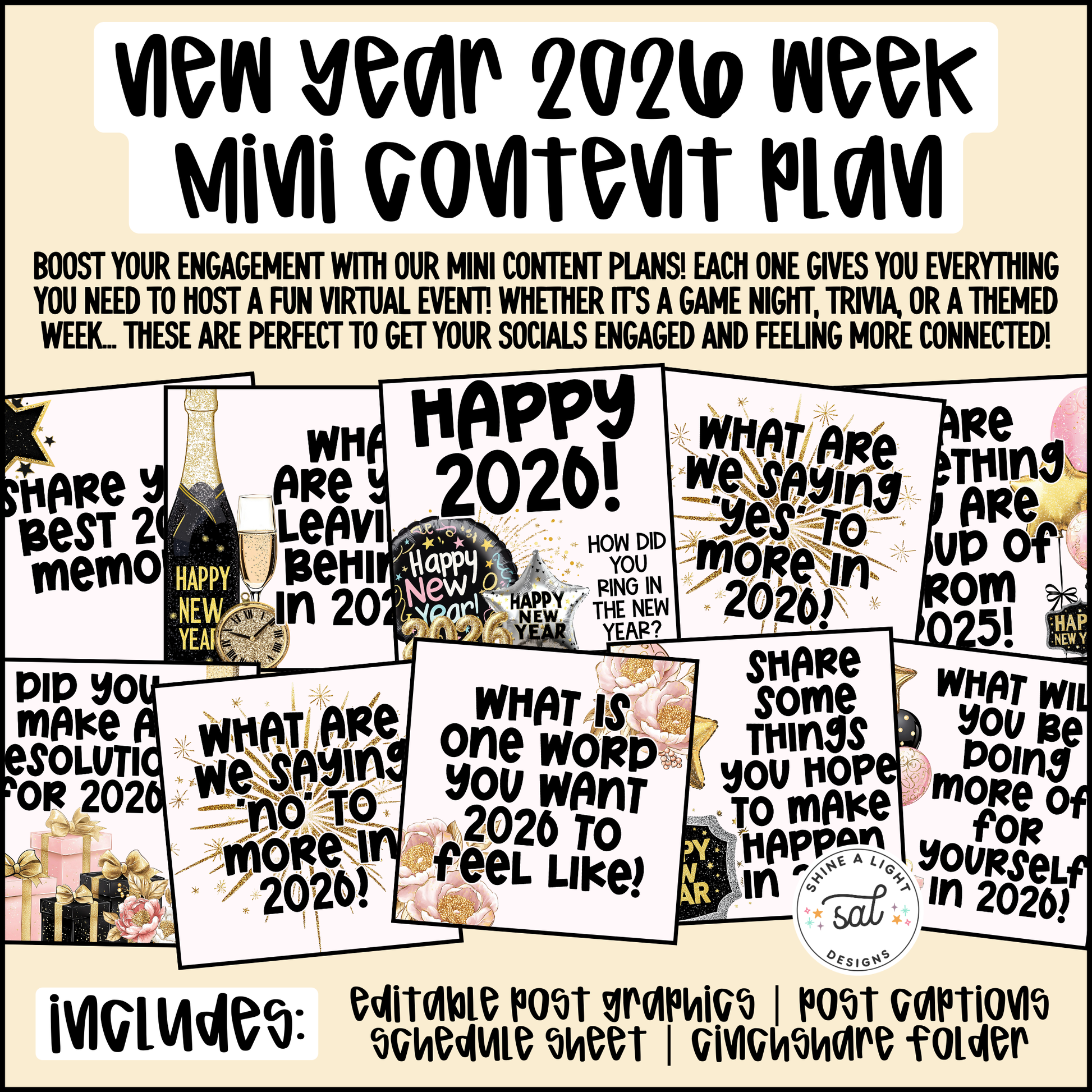 New Year 2026 Week Mini Content Plan - Graphics, Schedule + Verbiage for Any Small Business! (Copy)