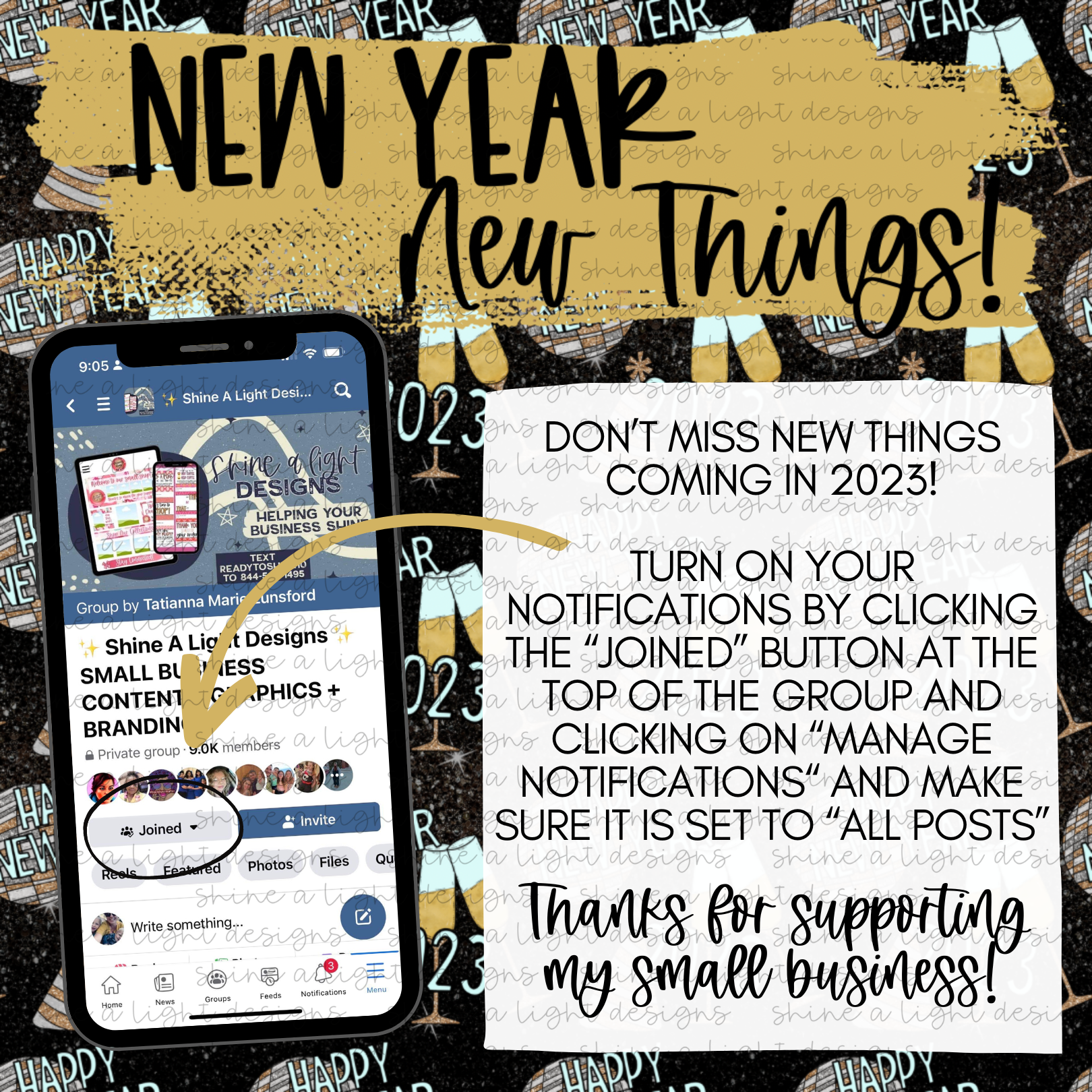 Easily swap my screenshot with yours in this Canva notifications template and make a fun New Year themed notifications post to start the year off right!