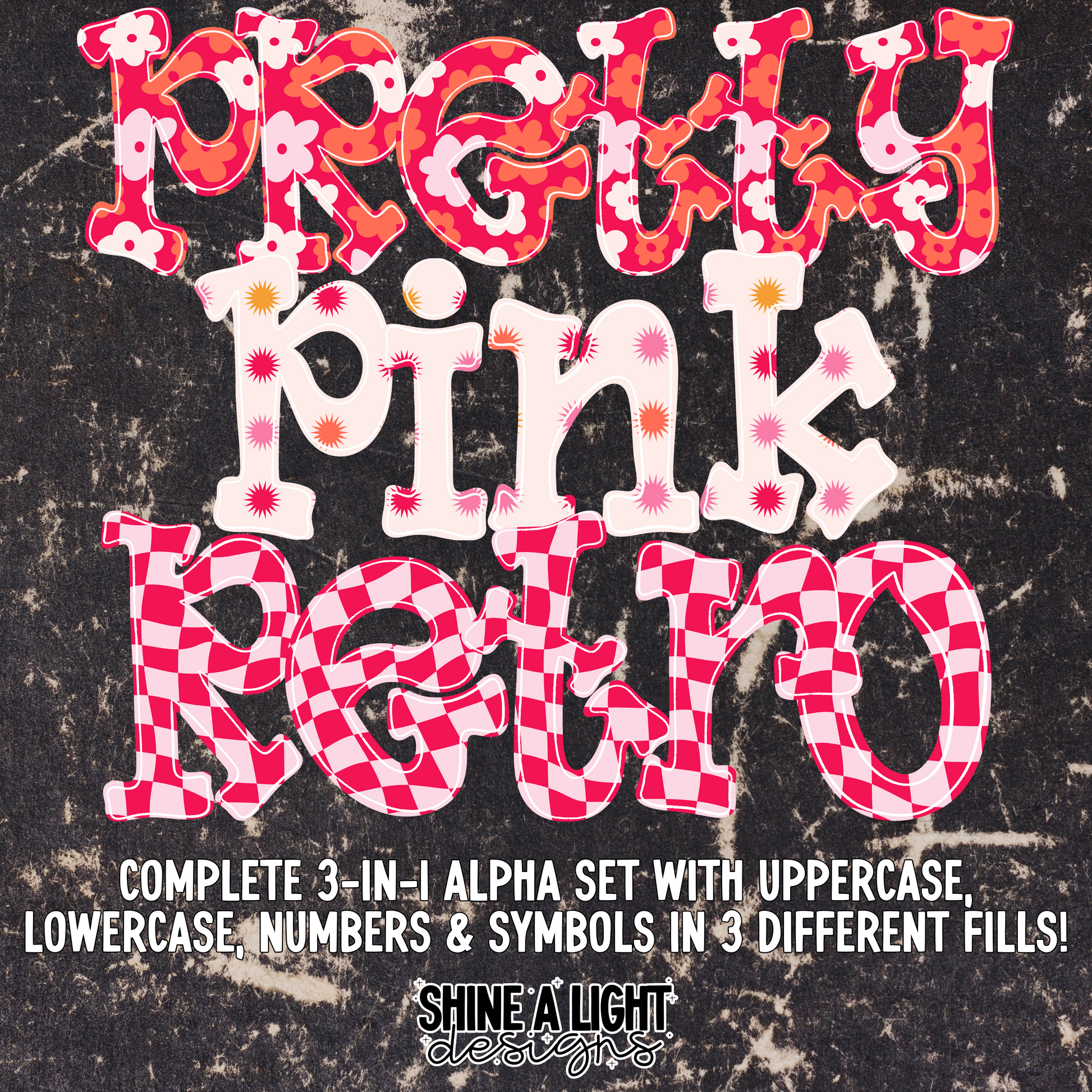 Create a variety of cute and fun designs with our Pretty Pink Retro alpha set! You get all letters upper & lowercase plus all numbers and commonly used symbols in 3 different coordinating fills! Have fun creating digital designs, eye-catching posts, printable & more!