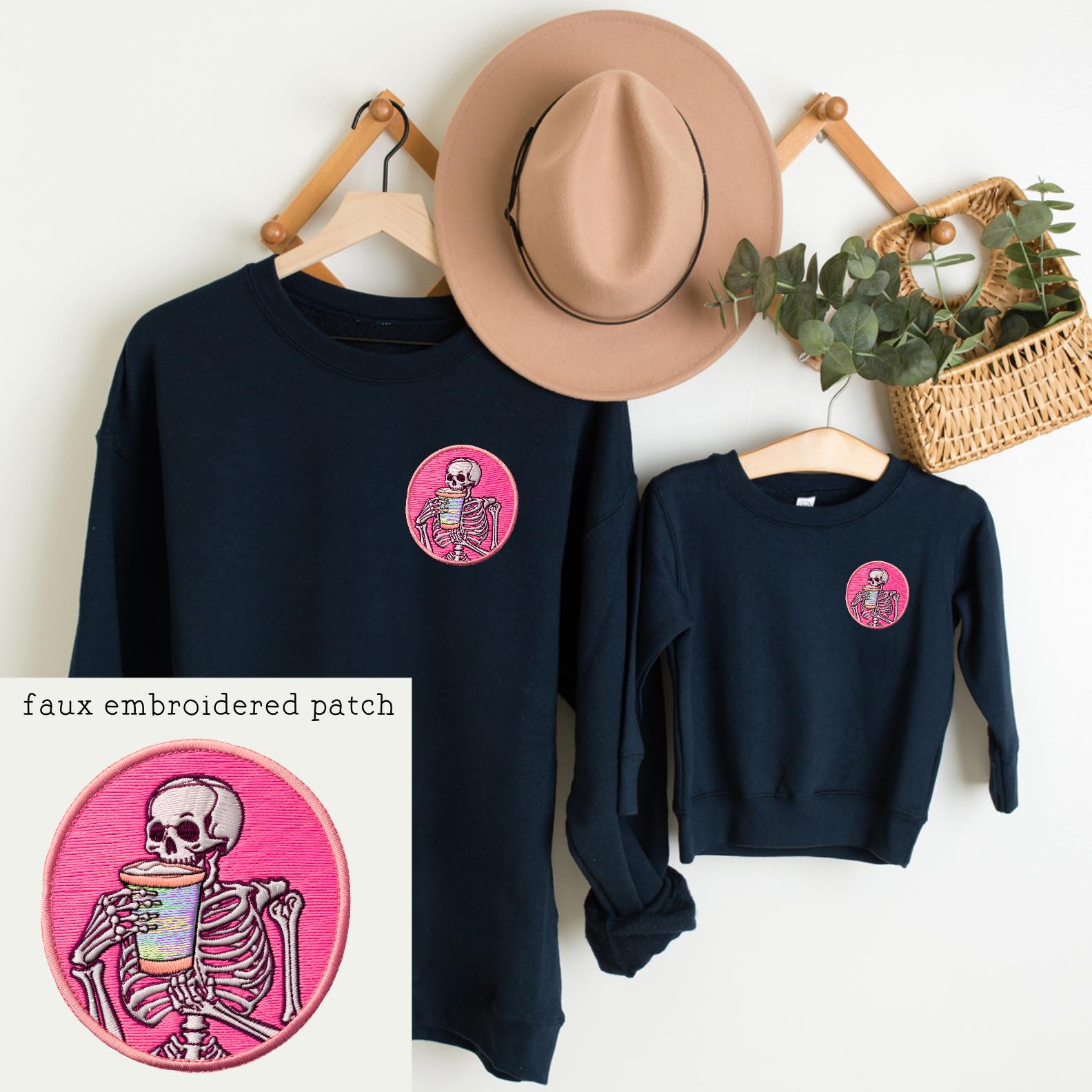 Skellie Coffee Faux Embroidered Patch Digital Download PNG