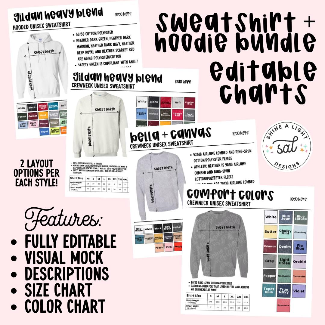 Sweatshirt/Hoodie Bundle Color/Size Chart Templates