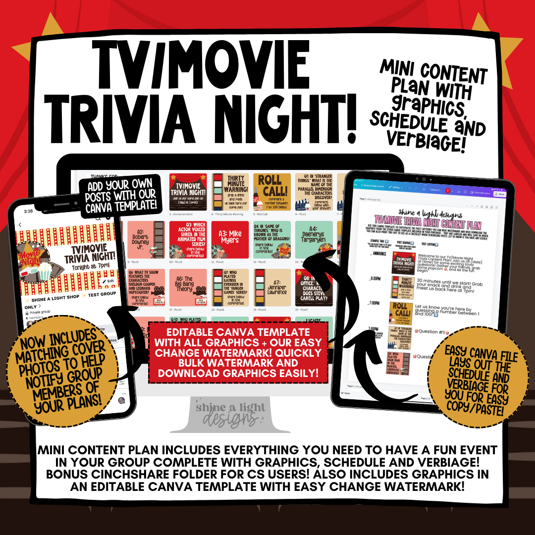 August TV/Movie Night Content Plan - Graphics, Schedule + Verbiage for Any Small Business!